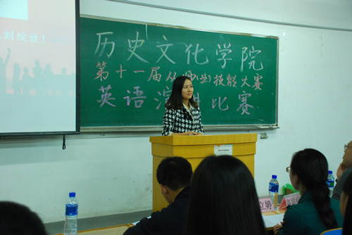 在比赛中,参赛同学表现出了得体的仪容、大方的举止,其流利的口语,独具匠心的自我介绍,大方自然又激情澎湃的主题演讲,以及最后与老师、同学的充分互动,为现场观众献上了一场英语盛宴,并得到了评委们一致的赞赏与肯定。最终经评委高祥峪老师、任立婷老师以及外国语公司的吕飞、成喆同学的认真评议,史涵文、陈楠、张美珍等三位同学分别获得本次比赛一、二、三等奖,王小燕、万莉莉同学获得优秀奖。