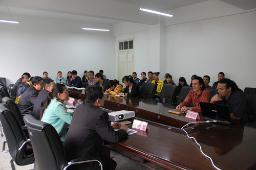 2014年5月16日,罗马尼亚籍职工Liviu和Daivid 的论文开题报告会在教学6号楼204室举行。甘肃省文物考古研究所郎树德研究员,伟德体育李并成研究员、刘再聪教授、秦丙坤副教授、李迎春副教授、王新春博士以及研究生50多人参加了开题报告会。伟德体育马拉毛草老师,武威雷台汉文化博物馆馆员、文物与博物馆专业硕士研究生吕龙梅担任专业翻译。
