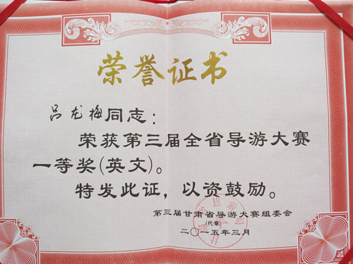 在第三届全省导游大赛中获一等奖