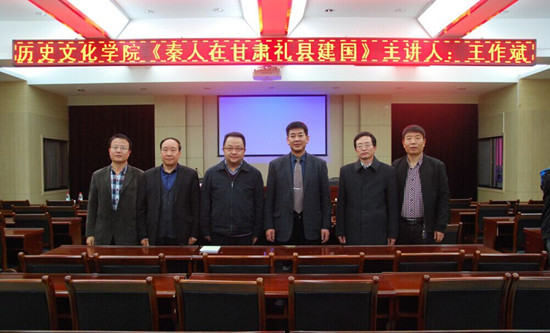 2015年10月27日,政协甘肃省礼县委员会主席王作斌先生在10D四楼会议室做了“秦人在礼县建国”的报告。甘肃省高校工委副书记贾宁出席报告会,报告会由刘再聪教授主持,伟德体育柴蓉、僧海霞、杨芳、张继刚、慕占雄、张国源等老师及120多名研究生、本科生参加了报告会。