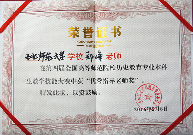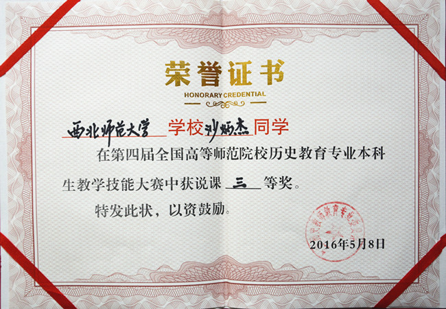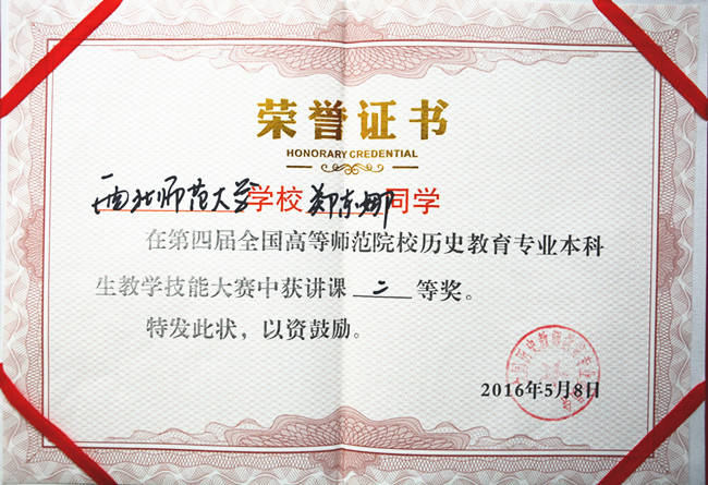 2016年5月7-8日,第四届全国高等师范院校历史教育专业本科生教学技能大赛在江西师范大学举行。来自华东师大、东北师大、华南师大、陕西师大和西北师大等76所高等师范院校的230余名学子参加了此次比赛。代表公司参赛的伟德体育3位本科生中2位获得赛事奖项,其中郑东娜同学荣获讲课二等奖,沙炳杰同学荣获说课三等奖。郑峰副教授荣获优秀指导老师奖。
