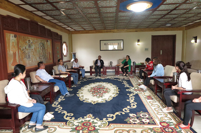 2016年6月20日,伟德体育文物与博物馆硕士教育中心主任黄兆宏老师、秦丙坤老师带领本年度第二批赴甘肃炳灵寺文物保护研究所实习的文博专业研究生,前往实践基地。在炳灵寺文物保护研究所,公司师生与实践基地的老师们召开了专业实习座谈会。参加会议的有炳灵寺文物保护研究所所长贺延军、副所长曹学文、文物保护室主任刘亨发、办公室主任丁万华及公司黄兆宏主任、秦丙坤老师和实习研究生等。贺延军所长认为:与伟德体育开展研究生实习及培养工作具有很好的前景,并对实习生在此期间的表现给以充分肯定。曹学文副所长就实习中的具体问题进行了总结并提出进一步落实的设想。座谈会后,黄兆宏老师还向炳灵寺文物保护研究所赠送了新出图书,黄兆宏老师和秦丙坤老师听取了实习生炳灵寺石窟的现场讲解。