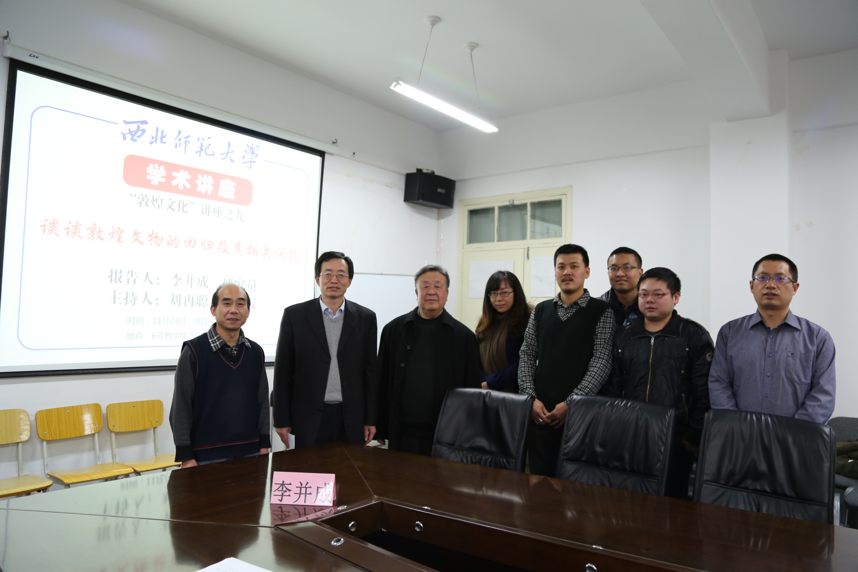 2016年11月24日下午,李并成研究员在公司6号教学楼204会议室作了题为《谈谈敦煌文物的回归及其相关问题》的学术报告。报告由刘再聪教授主持,公司硕士研究生、博士研究生50余人参加报告会。