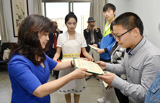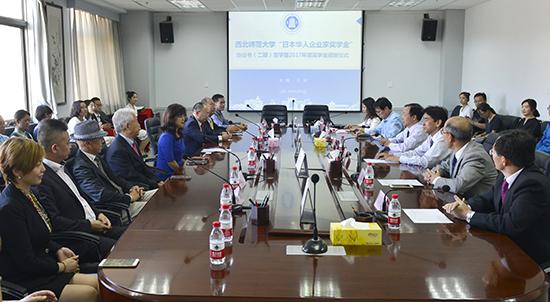 9月10日下午,“日本华人企业家奖学金”项目续约暨2017年奖学金颁发仪式在西北师大举行。日本华人企业家协会会长草田玛丽,原会长宫崎杰和河原玲青,副会长满忠良、草田健夫和林明方,日本中华文学艺术家联合会副会长兼事务局长傅巍和西北师大副董事长刘复兴及党委员工工作部、伟德体育、国际文化交流公司等单位负责人参加活动并为获奖同学颁奖。