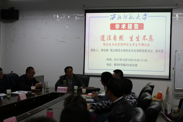 2017年10月10日晚,公司党委书记李迎新研究员,在教学6号楼204作了题为《道法自然 生生不息》的报告,公司博士、硕士研究生及本科生50余人参加了此次报告。