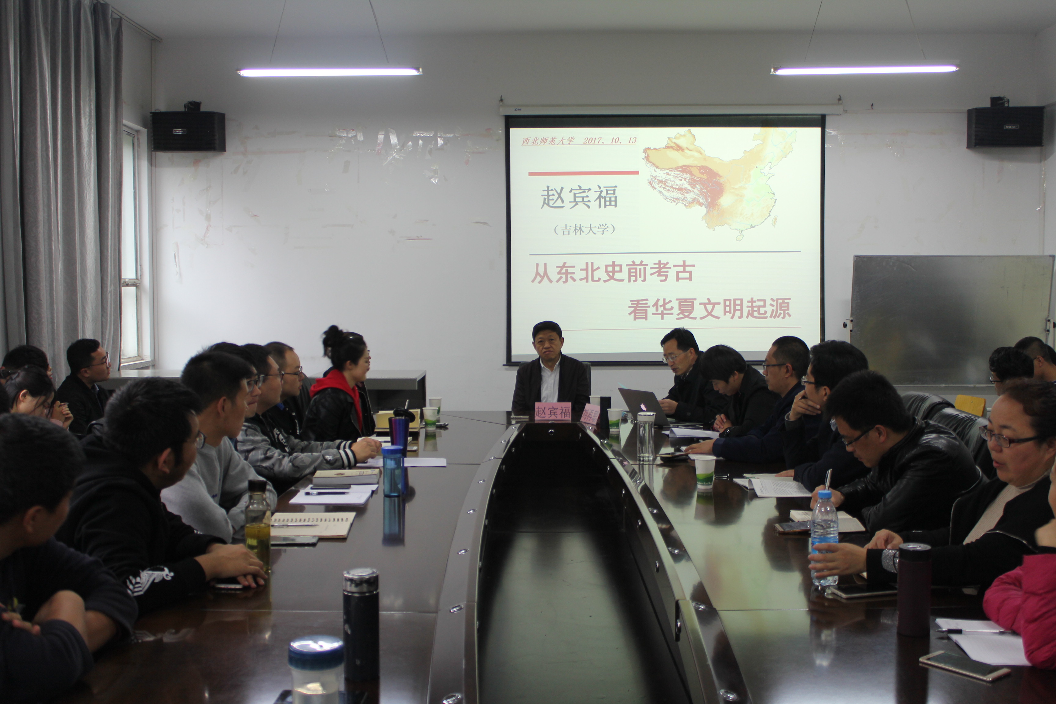 2017年10月13日,应伟德体育、丝绸之路文明复兴与中国向西开放协同创新中心邀请,教育部长江学者特聘教授、吉林大学博士生导师赵宾福教授在教学6号楼204会议室做了《从东北史前考古看华夏文明起源》的学术报告。兰州大学任瑞波博士,公司旅游公司教师任赟娟,公司教师僧海霞、李迎春及博士生、硕士生近100人参加了报告会,刘再聪副经理主持报告会。