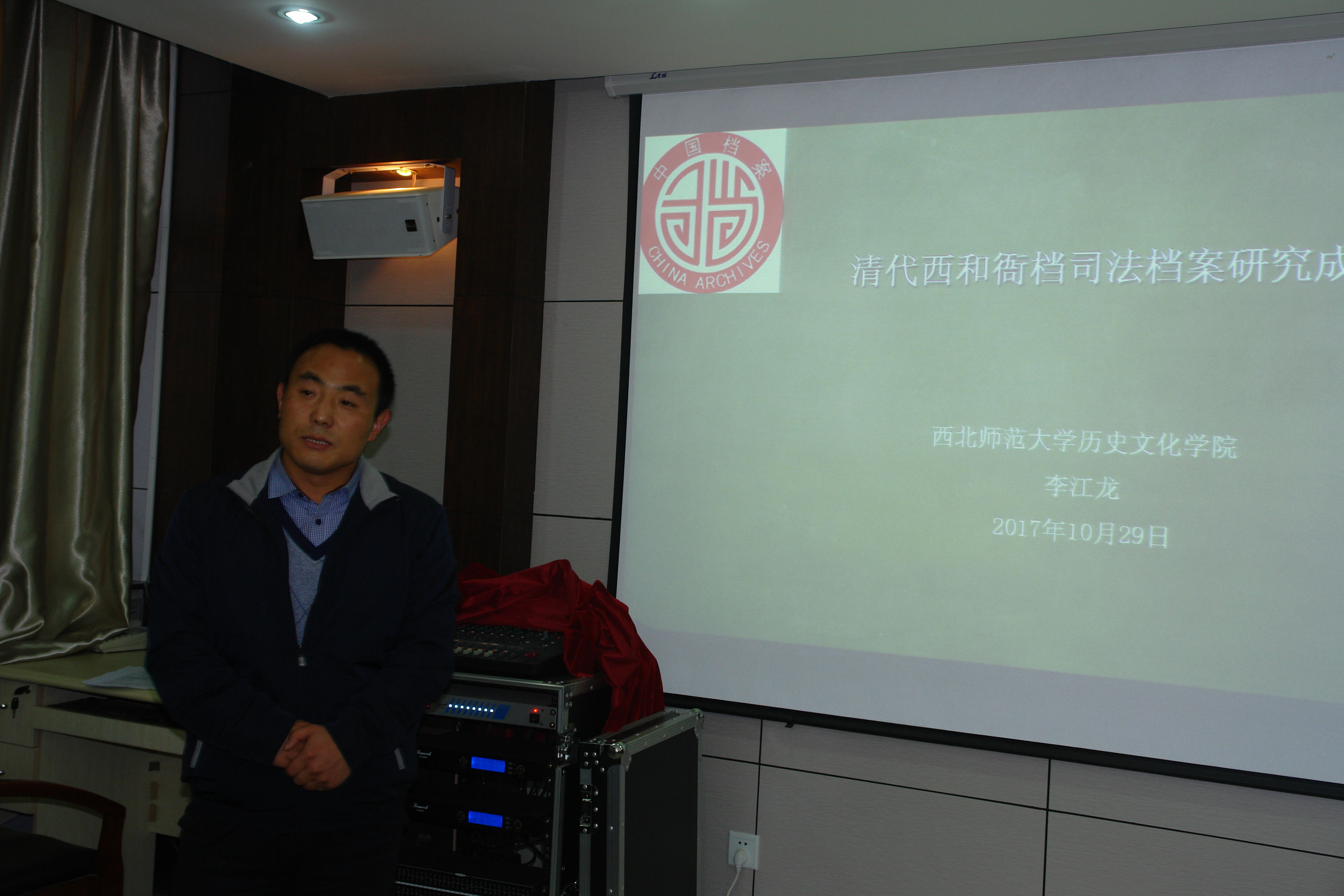 2017年10月28—30日,西汉水流域档案文化学术论坛在陇南市西和县召开。甘肃省档案学会、天水市、汉中市、宝鸡市、广元市、陇南市档案系统参加学术论坛。公司教师张连银、硕士生李江龙、王梦洁应邀参加,张连银老师在会上作了主题为“明清档案与明清史研究”的报告。尚季芳老师指导的硕士生李江龙代表王梦洁、胡君英同学向与会专家汇报了利用清代西和衙门档案资料研究的阶段性成果。西和县档案馆系公司文物与博物馆专业实践基地。李江龙、三位同学的学位论文文献资料主要利用西和县档案馆的清代档案材料。