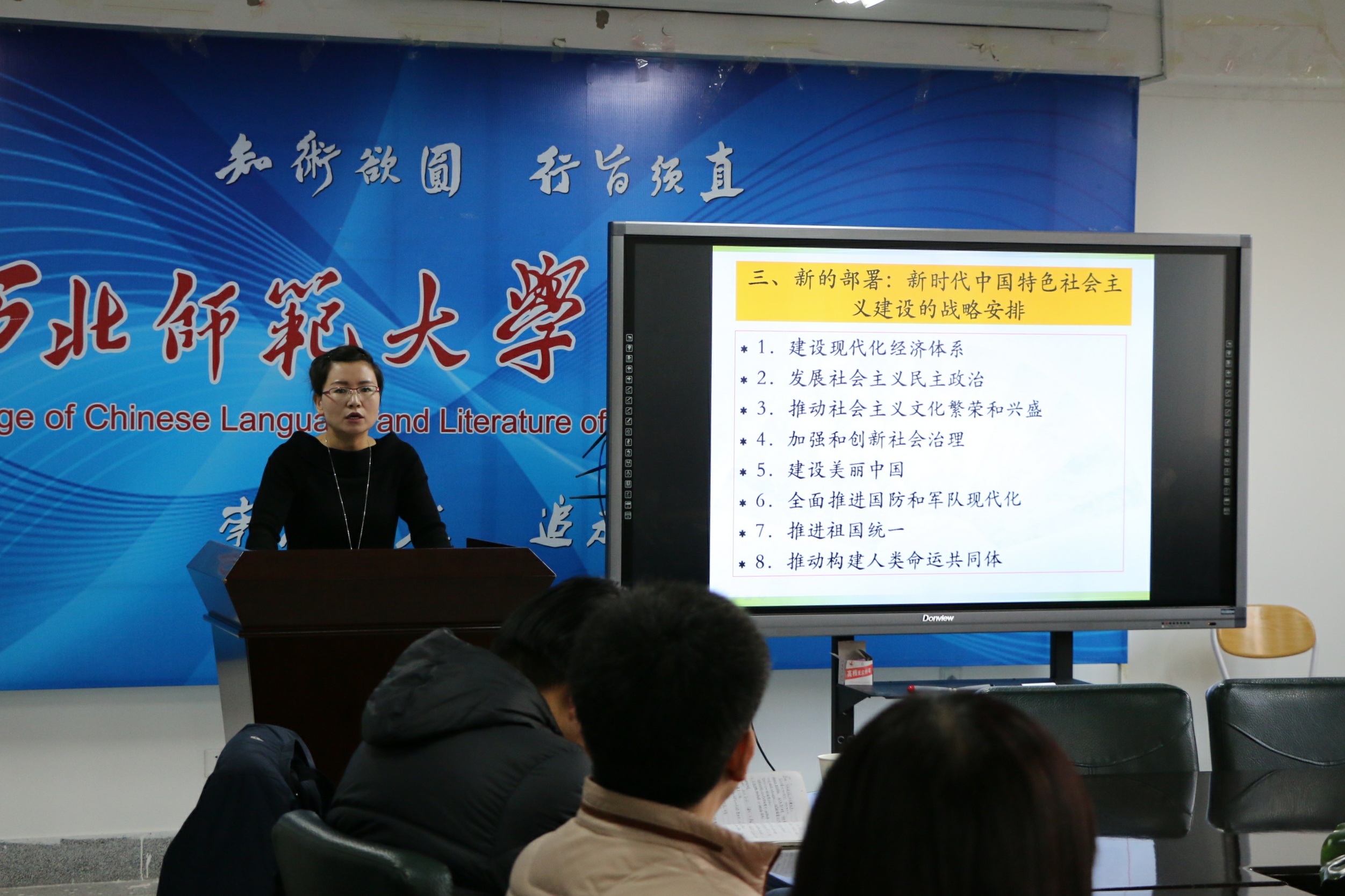 在宣讲中,马克思主义公司刘瑞兰老师围绕十九大报告,从对新时代的理解、习近平新时代中国特色社会主义思想、新时代中国特色社会主义建设的战略安排、推进党的建设伟大工程四个维度对十九大报告进行了深入、系统的解读。在随后的交流、对谈中,在场师生结合自己学习十九大的体会,并结合自己的工作、学习、教学、科研进行了积极讨论。公司党委常委、副董事长田澍教授结合自己在学术交流中的感悟,谈了对取得巨大成就的新时代的理解。同时,田董事长指出,对于十九大的学习,要入脑入心,要有行动,在结合伟德体育的工作中,就是要强化四个自信,要将史学研究与弘扬传统文化相结合,要有时代担当,学术研究要服务国家战略,同时要做好师生国际化视野的开拓,重视人才培养工作。