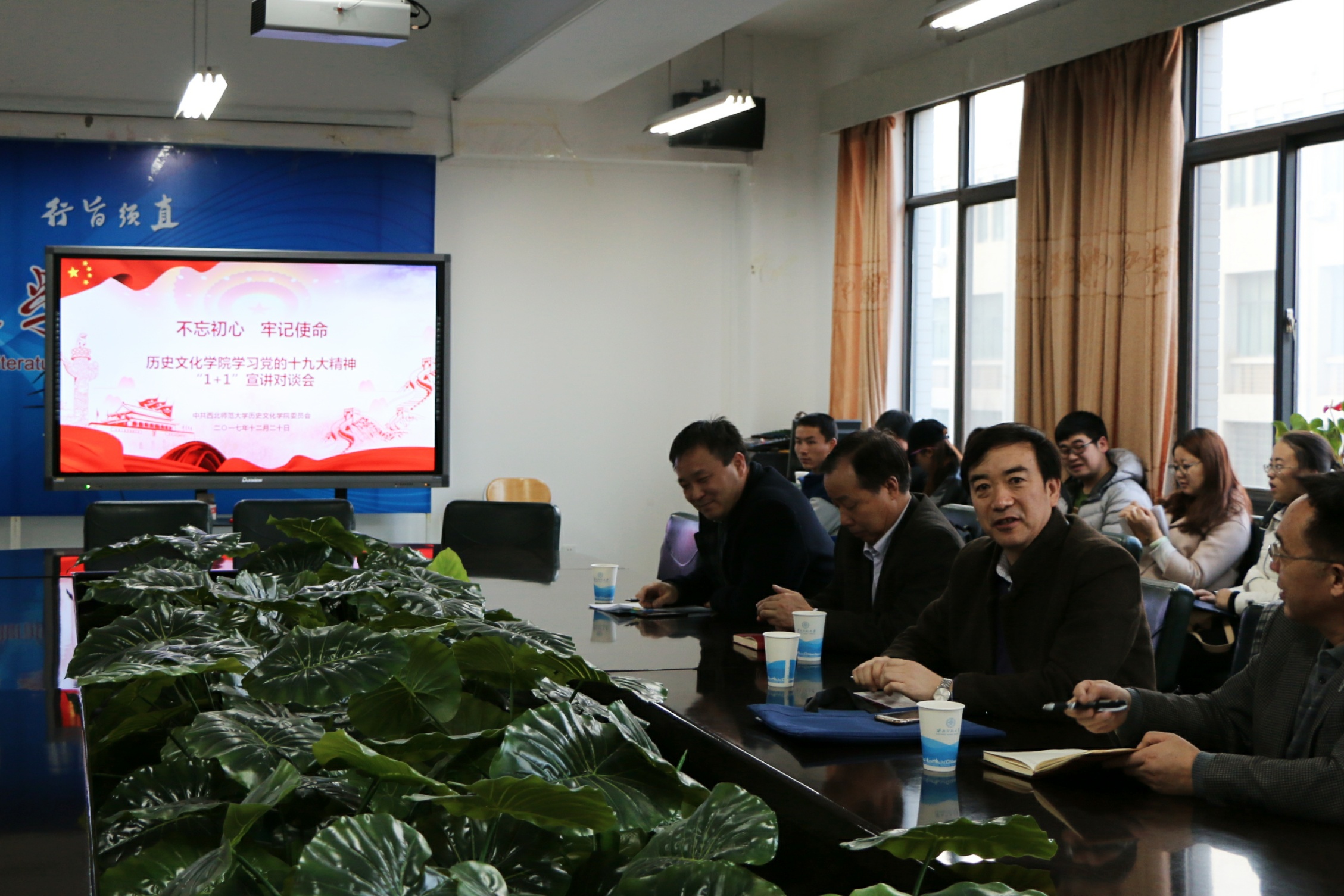 根据公司党委关于深入学习十九大精神的部署,12月20日下午,由公司党委常委、副董事长田澍教授和马克思主义公司刘瑞兰老师组成的学习十九大精神“1+1”宣讲对谈小组进入公司,面向公司全体教职工党员以及员工党员进行了十九大精神宣讲与对谈。