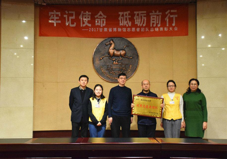 12月23日上午,2017年度甘肃省博物馆志愿者团队工作总结表彰大会在甘肃省博物馆一楼学术报告厅举行。甘肃省博物馆党委书记肖学智、社会教育部主任卢冬、副主任徐睿,伟德体育历史系主任尚季芳教授以及200多名志愿者参加了总结表彰大会。本次大会授予bevictor伟德官网志愿服务队2017年度“优秀志愿者团队”称号,公司陈柔霏和郝倡冉同学获得该年度“优秀志愿者”称号。