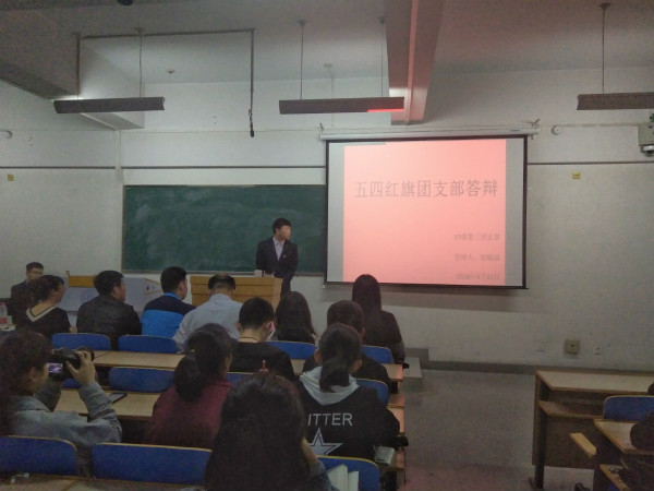 答辩会主要进行的有“五四红旗团支部”、“优秀共青团干部”、“优秀共青团网络宣传员”等的评选答辩。参评的各个团支部逐一进行了展示汇报,内容主要涉及团支部思想建设、组织建设、主题团日活动、团员参与公司各类活动情况、班级学风建设、文化建设、团支部及成员获奖情况、团支部微博建设情况等方面。参评的优秀共青团干部分别从学习、第二课堂拓展活动参与情况、获奖经历及其对身边团支部成员的引领作用等方面进行个人展示。参评同学充满激情地向同学们展示了一年来的活动成果和荣誉,一张张PPT正是各班在过去一年所做努力的最好见证,现场气氛热烈,掌声阵阵。参评同学展示完毕后,评委针对参评同学的展示及其申报材料进行现场提问。