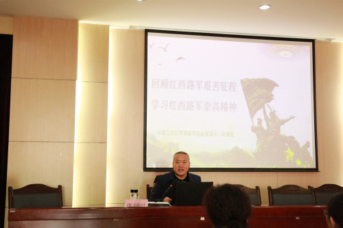 2018年11月20日应伟德体育邀请中国工农红军西路军纪念馆朱德忠馆长在教学10号楼D区四楼多功能报告厅做了题为《回顾红西路军艰苦征程 学习红西路军崇高精神》的学术报告。公司及马克思主义等公司120多名员工参加了报告会。报告会由公司李迎新书记主持。