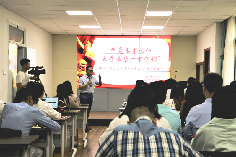 6月2日晚,公司党委书记李迎新在教学七号楼317会议室给2019届毕业生党员上了大学最后一节党课。