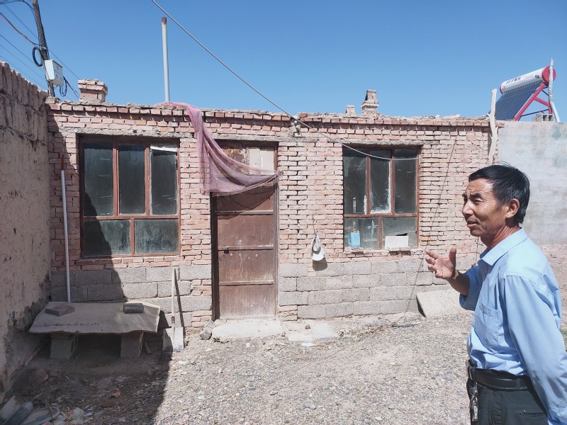 719日,我们乘上前往敦煌的列车,展开了为期五天的访谈、调研。定西村的村民大多是九十年代搬迁于此。谈及刚搬迁之时的生活时,他们的眼神总是盯着一个地方,陷入回忆中,有人沉默之久只会摆摆手告诉我们那段日子太苦,他们黝黑的面庞,干涸的唇裂,我们不忍追问。也有人愿意与我们倾诉,犹记得一位婶子提及他们刚来修住房时,孩子太小没人照看,他们就在一边搭建房屋,在另一边地上刨了一个坑,垫上东西,将孩子放在坑里,风沙大得连孩子的脸都看不清。