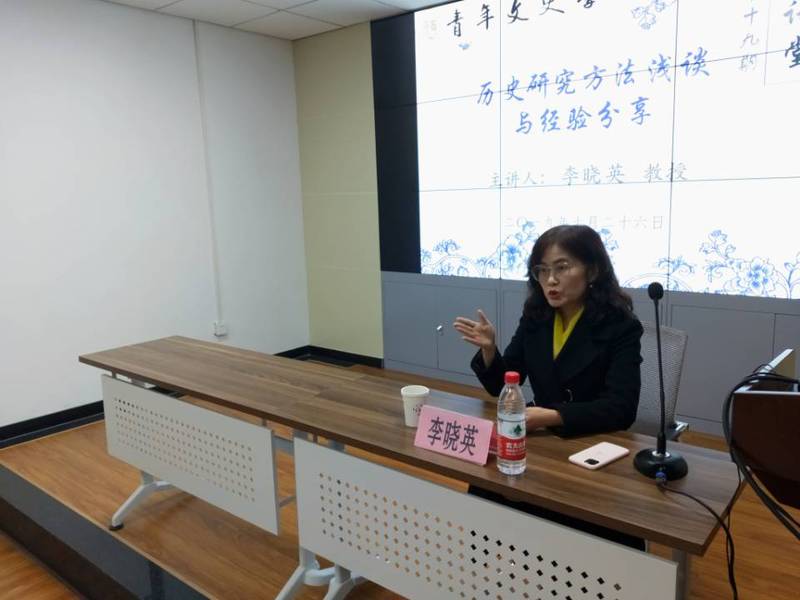 2019年10月26日晚19:30,青年文史学社在教学7号楼317会议室举办了第十九期毓苑讲堂。此次毓苑讲堂,青年文史学社邀请到了伟德体育教授李晓英主讲主题为“历史研究方法浅谈与经验分享”的讲座。共有近百位来自伟德体育和其他公司的历史爱好者参加了本次讲座。