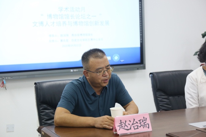 首先,赵治瑞介绍了文物与博物馆专业硕士研究生在高台县博物馆的实习情况,认为在博物馆实习是文物与博物馆专业研究生提高实践能力的重要环节。