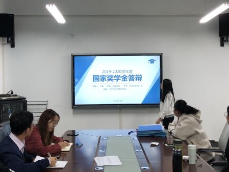 为做好2019-2020学年度本科生国家奖学金评选工作,公司于2020年9月26日晚七点在教学7号楼308会议室举行本科生国家奖学金答辩会,陈来虎老师、辅导员王浩、付蓉老师、优秀员工代表秦钰和武遥担任答辩会评委。参加答辩的同学有2018级历史学2班万爱同学、王秋尧同学、张雪洁同学和2017级历史学2班曹淏月同学。答辩会由杨振宇主持。