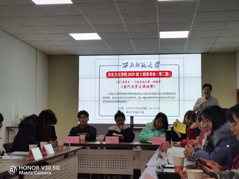伟德体育2020级3班于2020年12月3日19:30在317会议室举办第二期读书会,班主任陈来虎老师主持,3班全体同学参与。本次研讨书目《当代史学主要趋势》。