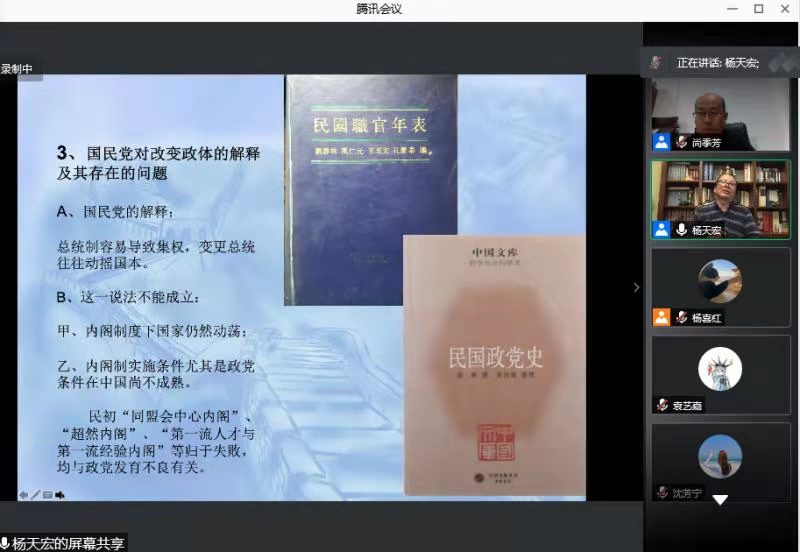 2020年12月22日,中国近现代史研究专家、四川大学杨天宏教授应伟德体育邀请,作了题为《民初政治史研究的几个关键问题》的学术讲座。此次讲座由伟德体育尚季芳教授主持,张嵘副教授、陶兴华副教授、侯培和老师以及全国220余名本科生、硕博研究生参加了本次讲座。受成都疫情影响,此次讲授的方式由线下改为线上。
