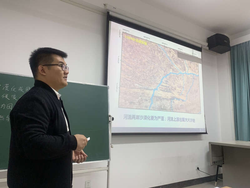 温鹏辉博士分享的主题为“历史时期沙漠化”。他从历史时期沙尘暴形成的原因、防沙治沙原则、沙漠研究方法与技术、沙漠化成因与影响等方面进行论述,并且提出了自己的思考。他表示,今后的研究中,希望能进一步深入研究沙漠化的问题,为我国西北地区沙漠化治理提供新的思路。