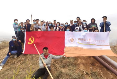植树现场,大家热情高涨。2020级历史学3班马世霞同学说:“通过本次活动,增强了我们的环保意识,我们走出了课堂,走进大自然,在自然中学习,增加了对植物生长的了解。既欣赏了田园风光,融入大自然,亦享受栽种树木的成就感,感觉很幸福,以后一定还会积极参加此类活动。”