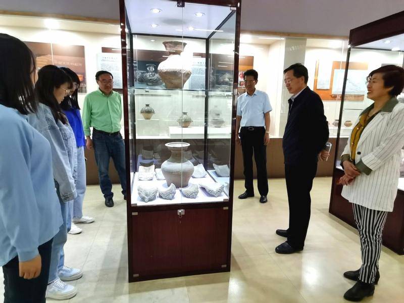 座谈会后,刘再聪教授一行与张晓东馆长对嘉峪关御庆博物馆群进行了考察,先后参观了丝绸之路史前文化博物馆、中西亚陶瓷器、古玉器青铜器、观赏石艺术馆等,了解了各馆文物收藏及展览情况。