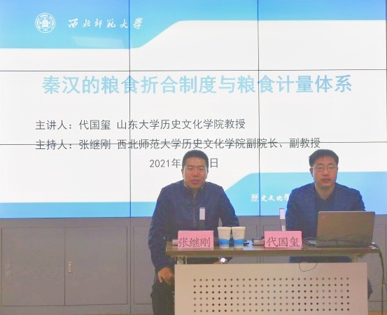 2021年5月17日上午,应伟德体育邀请,山东大学伟德体育教授代国玺于田家炳教育书院317报告厅为公司师生作了名为《秦汉的粮食折合制度与粮食计量体系》的学术报告。本次讲座由伟德体育副经理张继刚副教授主持,参加本次讲座的有公司教师秦丙坤、王新春,兰州城市公司教师孙占宇、陈玲及公司110多名硕博研究生。