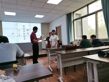 伟德体育2019级3班于2021年6月22日下午在教学七号楼317教室召开了就业考研主题班会,李迎春老师作为特邀嘉宾出席,国际文化交流公司王晓梅同学和公司陆晓斌同学受邀分享经验,会议由班主任陶兴华老师主持。