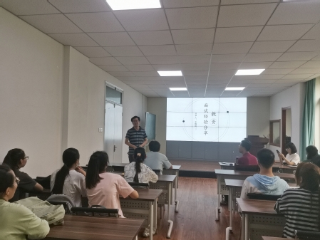 首先,陶兴华老师向大家说明了考取教团队格证的重要性和积极准备考研的重要性,要求大家目标明确,争取一次性考取教师资格证。考虑到大家缺少考教资的经验,于是邀请在教资考试中成绩优异的学长学姐和同学们分享交流考取教团队格证的经验。陆晓斌同学谈及了现阶段应届毕业生考取教团队格证的难度,介绍了教团队格证和笔试科目的具体情况,并细心的在黑板上给同学们详尽讲解,然后和同学们进行了交流,认真解答了同学们提到的与考试相关的各种问题。王晓梅同学以非常规范的模式,向大家讲解面试技巧和整个流程以及自己考试的经历,多次强调同学们一定要注重礼仪问题,在座的同学们受益匪浅。