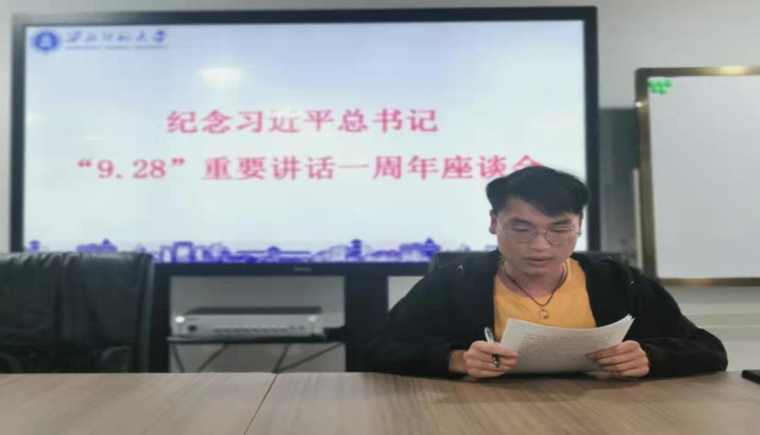 赵凯同学表示:在目前的学习中,要以“9•28”讲话精神为行动指南,练就过硬本领,在就业选择上考虑自身专业性,择一事,终一生。