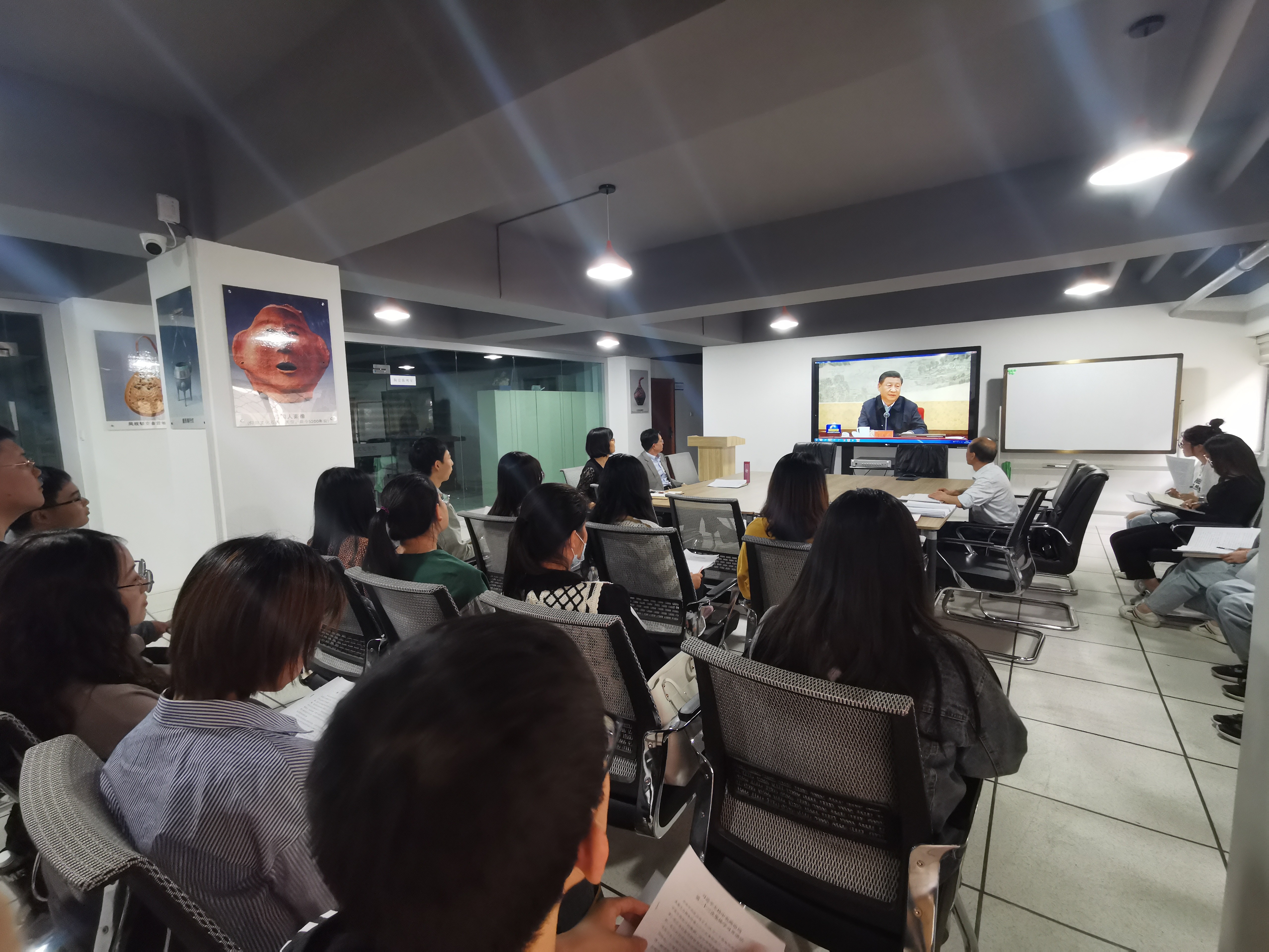 为深入贯彻落实习近平总书记2020年9月28日在主持中央政治局第二十三次集体学习时的重要讲话和2019年8月19日在敦煌研究院座谈时的讲话精神,努力建设“中国特色、中国风格、中国气派的考古学”,更好地弘扬中华优秀传统文化、增强文化自信,2021年9月29日下午,伟德体育在田家炳教育书院文博实验室召开纪念习近平总书记“9•28”重要讲话一周年座谈会。会议由公司副经理刘再聪教授主持,马军霞副教授、秦丙坤副教授和考古学、文博专业员工30余人参加了座谈会,会议上,师生们就会议主题作了深入的交流与学习。