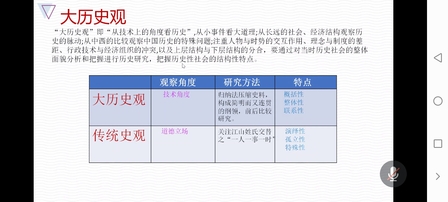 本次活动由五位同学分享。第一位报告人是李蜜兰,她首先对黄仁宇先生大历史观的两个核心观点,即“地理和气候因素造成中国大一统的政治格局”和“财产权的绝对至高无上、信用的扩张是资本主义诞生于欧洲沿海国家的根源”进行了分析;之后,她从书名及章节内容入手,指出“封建王朝以道德代替法制,是一切问题的症结”,并从研究视角和写作切入点等方面进行了解读。第二位是童阿西同学,她指出本书以人物为主线展开行文;接着,提出问题并剖析:作者为何多次提及文官集团?在万历一朝的政治构架中谁是受益者?是文官集团吗?明朝崩溃的原因是什么?此外,她从观察历史的方法入手,将大历史观和传统史观作比较;最后,就道德在国家治理中的作用分享了个人感悟。陈老师对她作报告过程中的概念解释、比较以及图表使用予以肯定。