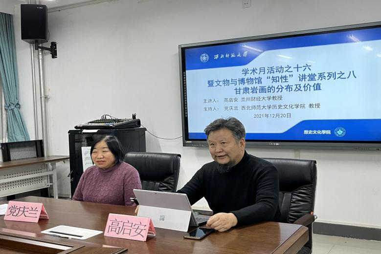 2021年12月20日下午2:30,应伟德体育邀请,兰州财经大学高启安教授作了题为《甘肃岩画的分布及价值》的学术报告,报告由公司党庆兰老师主持,潘春辉、连菊霞、张荣老师及80余名研究生参加了此次学术报告会。