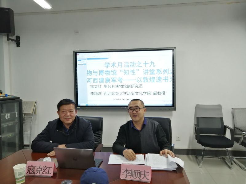 2021年12月27日晚上7:30,原高台县文物局局长寇克红应伟德体育的邀请,在田家炳教育书院308会议室做了题为《唐代河西建康军考——以敦煌遗书为中心》的学术报告,此次报告会由李顺庆老师主持,公司李晓英、黄兆宏、张连银、秦丙坤老师及80余名研究生参加。
