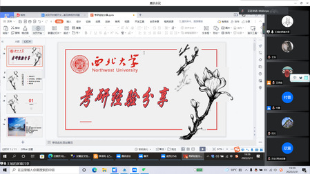 首先,考研至中央民族大学的何琴同学从择校、招生、备考三方面具体地为同学们分享自己考研的经验,并着重强调在择校过程中对招生数目和分数线的了解,以及在备考中专业课的复习方法。紧接着,考研至西北大学的王旭同学从考研目标、自我判断、备考心态三个方面进行分享,特别就备考时对情绪的调节和把控学习效率两个方面展开讨论。