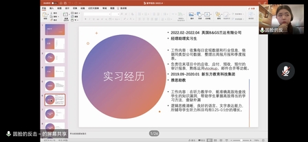 随后,张朱岱仡就自己申请澳门大学的经历与在座的同学们进行了分享。张朱岱仡介绍了澳门大学的团队力量、奖金设置等公司基本情况;并且将个人的本科经历、研究生申请历程和面试流程详细讲解,为同学们提供了很多“经验干货”。