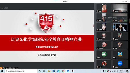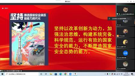 2022年4月15日是我国第七个全民国家安全教育日,为筑牢员工国家安全观,提高个人安全意识,更好的维护国家安全和自身安全。伟德体育于2022年4月15日晚在腾讯会议进行国家安全教育日精神宣讲活动。此次活动由张文骐主持,团委书记王浩和员工代表进行宣讲,公司教师代表和本硕博员工参加宣讲会。
