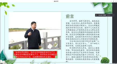 张晶同学介绍了陇原生态环境的现状,并阐释国家提出的筑牢国家西部生态安全屏障、持续改善生态环境质量,加快建设幸福美好新甘肃、不断开创富民兴陇新局面而奋斗的绿色理念。