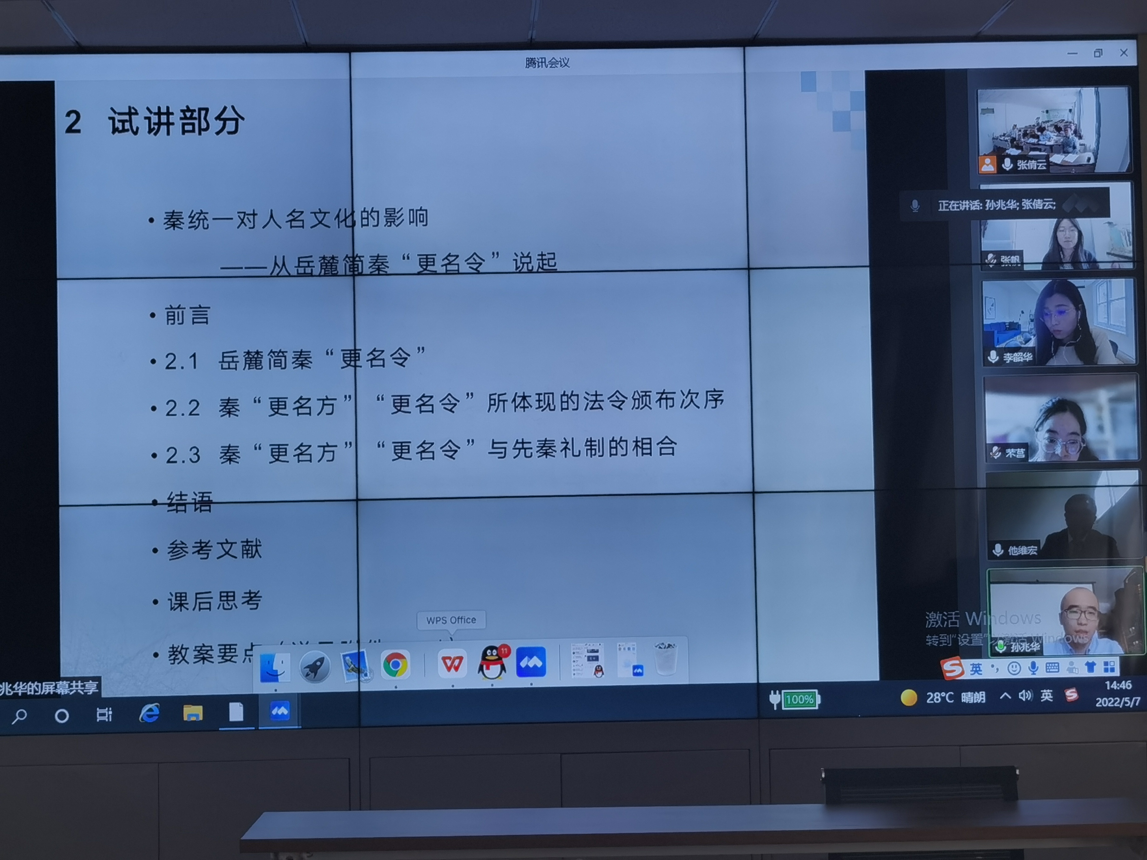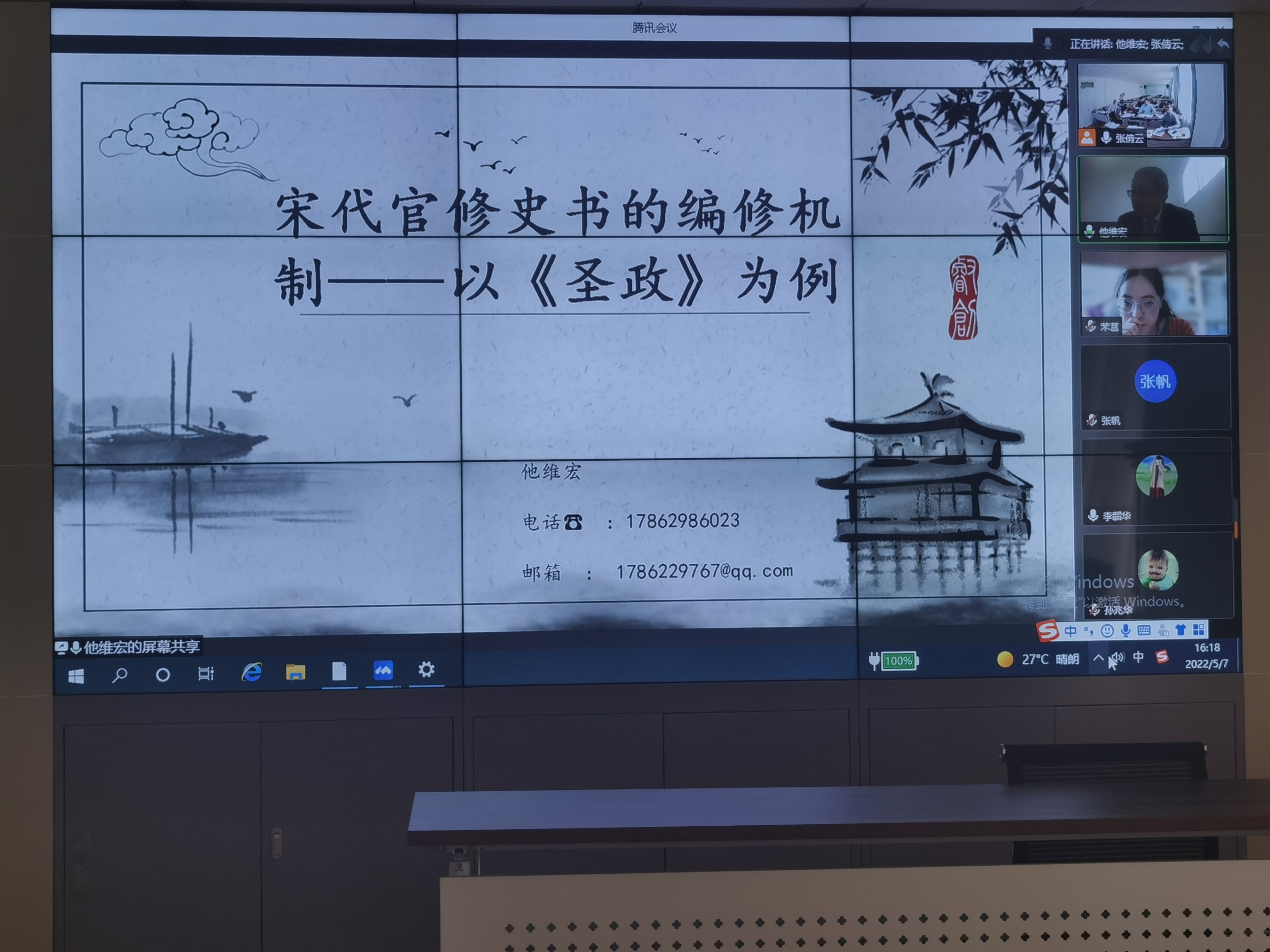 2022年5月7日,中国人民大学博士孙兆华、清华大学博士张帆、东北师范大学博士李韶华、山东大学博士他维宏、首都师范大学博士袁雅洁在腾讯会议上进行学术分享。公司领导班子、系所中心负责人、师生代表参加,并就报告人阐述的主题展开探讨。