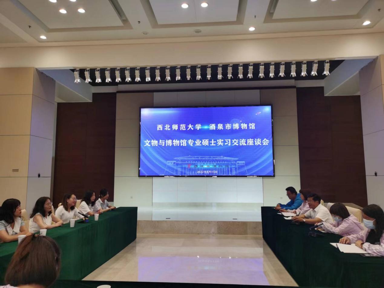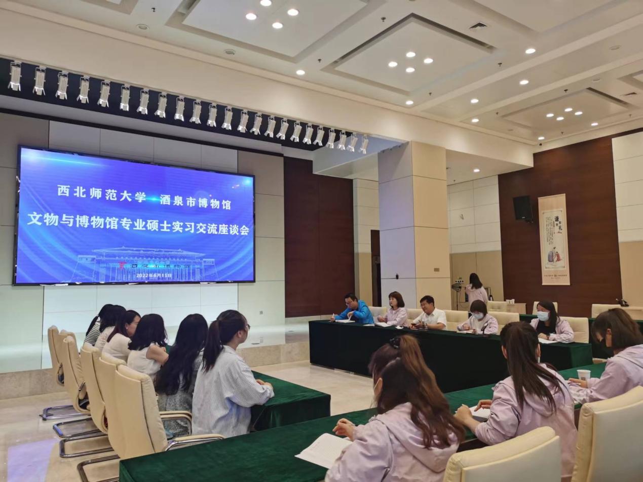 2022年6月14—15日,公司教师李晓英、李小娟带领4名文物与博物馆专业硕士研究生赴酒泉市博物馆实习。6月15日上午,师生一行与酒泉市博物馆馆长王杰元、展陈部副主任纪雅楠、文管部副主任薛洋和馆内部分干部职工举行了座谈会。双方就实习基地合作、实习生相关管理及实践问题进行深入交流。王杰元馆长表示,实习生在馆期间的实践以打基础为准,然后参与馆内相关工作进行锻炼,了解博物馆各个部门的工作,在实践中日益提升对博物馆日常工作的整体认知。李晓英老师和王杰元馆长就实习生日常管理要求、馆内工作纪律和日常生活等进行了交流,李晓英老师叮嘱员工一定要遵守馆方纪律,服从管理,注意人身安全。