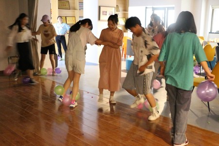 第一项进行的是踩气球游戏。这项游戏的规则是在结束后,哪个组保留的气球数目最多,哪个组获胜。同学们通过踩气球来释放自己内心的压力,让自己的心情得到缓解。在活动中不亦乐乎,活动现场更是充满了欢声笑语。