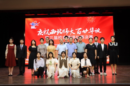 决赛现场,12名选手依次登台,用深情的语言将心中的师大故事和师大精神娓娓道来。唐智豪同学带领我们追寻师大之根,探索师大之源;马义婷同学回顾了师大的拓荒史,为我们讲述西北师大与敦煌文物的不解之缘;张志婷、张树才、姬浩天、白轲同学讲述了师大百廿的薪火相承,与我们一起聆听师大故事,感悟师大力量;闹加草同学则讲述戍边故事,致敬英雄员工——陈红军烈士,他的故事带给在场听众深深的感动;张宸萁、潘燃、刘婧、镡祎娜为我们回顾了师大先辈为西北教育事业的奉献;丁继娥同学继承先辈精神,结合自身实践为我们展望了师大美好的未来和师大青年人的担当。