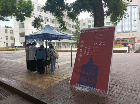 为深入贯彻落实《禁毒法》及《关于深化全民禁毒宣传教育工作的指导意见》,进一步加强公司员工对毒品危害的认识,增强自我保护意识,提高青年员工抵御毒品能力,营造校园禁毒的良好氛围,公司青年志愿者协会于6月26日在教学7号楼前举办“国际禁毒日”主题宣传活动。