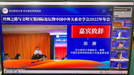 田澍教授首先向各位与会专家学者表示欢迎。“一带一路”是古代丝绸之路的当代表达,要铸就中华文化新辉煌,就要以更加博大的胸怀,博采众长,积极主动地学习、借鉴世界一切优秀文明成果。只有深入研究古代丝绸之路文明互鉴的历史内涵和深刻意义,进一步加强中外关系史的研究,才能为中国历史学的学科体系、学术体系与话语体系的构建做出积极的贡献。