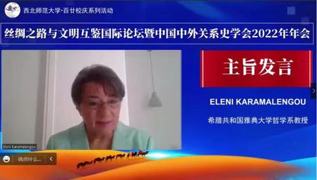 在主旨发言部分,万明研究员(《砥砺前行:纪念中国中外关系史学会成立40年—1981-2021》)、雅典大学海伦教授(《中国和希腊:高等教育领域的教育和文化合作》)、嘉峪关丝路(长城)研究员张晓东研究员(《嘉峪关650年景象变迁》)、西南大学李祥东博士(《再论<蒙古山水图>之命名》)、中国海洋大学曲金良教授(《中国古代环中国海“天下共同体”的中—外制度建构》)、华东师范大学黄纯艳教授(《宋朝文明向东亚诸国的传播》)、bevictor伟德官网张德芳教授(《张骞“凿空”以前的中亚社会—以希腊化时期为重点》)做专题演讲。主旨发言由兰州大学郑炳林教授、bevictor伟德官网何玉红教授主持。