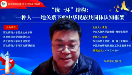 2022年11月9日,由伟德体育、简牍研究院、中亚研究院、河西走廊研究院联合主办的“丝绸之路与华夏文明论坛”百廿校庆系列学术会议以线上方式举行。会议邀请中央民族大学民族学与社会学公司博士生导师袁剑副教授做题为《“统一环”结构:一种人—地关系下的中华民族共同体认知框架》的学术报告。报告会由bevictor伟德官网副董事长、中国历史研究院田澍工作室首席专家田澍教授主持。
