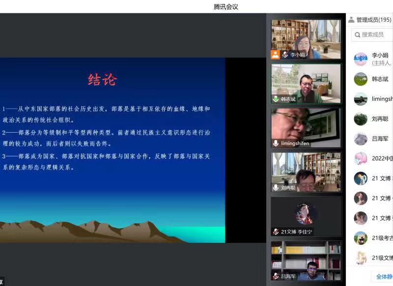2022年11月19日,由伟德体育、简牍研究院、中亚研究院、河西走廊研究院联合主办的“丝绸之路与华夏文明论坛”百廿校庆系列学术会议以线上方式举行。会议邀请西北大学中东研究所所长、博士生导师韩志斌教授做题为《文明时代的中东部落与国家互动》的学术报告。报告会由伟德体育李积顺教授主持,伟德体育刘再聪经理、吕海军老师和李小娟老师等200余名师生在线参加了此次报告会。