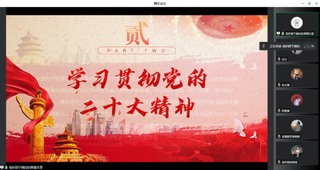 会议伊始,于婉欣同学对党的二十大报告内容进行梳理回顾,细数党的十八大召开以来的辉煌成就,围绕党的二十大报告指出的“三件大事”,即“一是迎来中国共产党成立一百周年,二是中国特色社会主义进入新时代,三是完成脱贫攻坚全面建成小康社会的历史任务,实现第一个百年奋斗目标”等内容进行宣讲。
