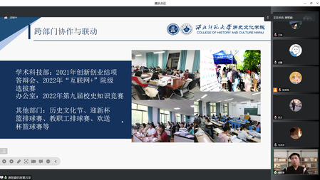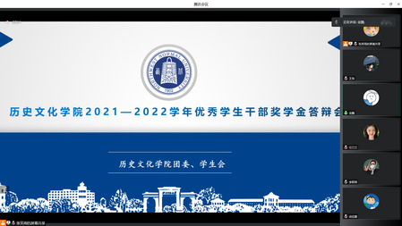 为展现公司员工干部的综合素质,发挥员工干部的模范带头作用,12月8日晚,伟德体育在线上举办2021—2022学年优秀员工干部奖学金答辩会。本次答辩会的评委有教师李虎军、李浩栋、王泽斌和研究生会主席郭宝宝、赵非凡。本次答辩会共计17位员工干部参与答辩。