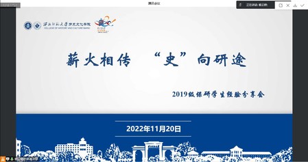 12月11日晚,公司举办“薪火相传,史向研途”——2019级保研员工经验分享会第二场,会议邀请今年成功保研的2019级历史学1班员工王黎晅、康耘著和2019级历史学4班(云亭班)员工杨云婷进行经验分享。公司辅导员付蓉、王泽斌、杨云婷,2020级、2021级、2022级共计300余本科生参加分享会。本次会议由杨云婷主持。